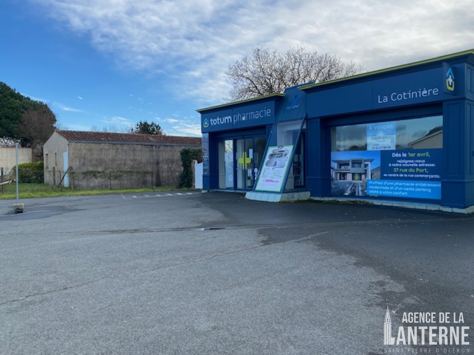 A 200 m de l'Océan et à 700 m du Port de La Cotinière, sur un terrain de 370 m² environ, local commercial de plain-pied d'une surface intérieure de 120 m² bénéficiant de 8 mètres linéaires de vitrines et un parking goudronné de 150 m².