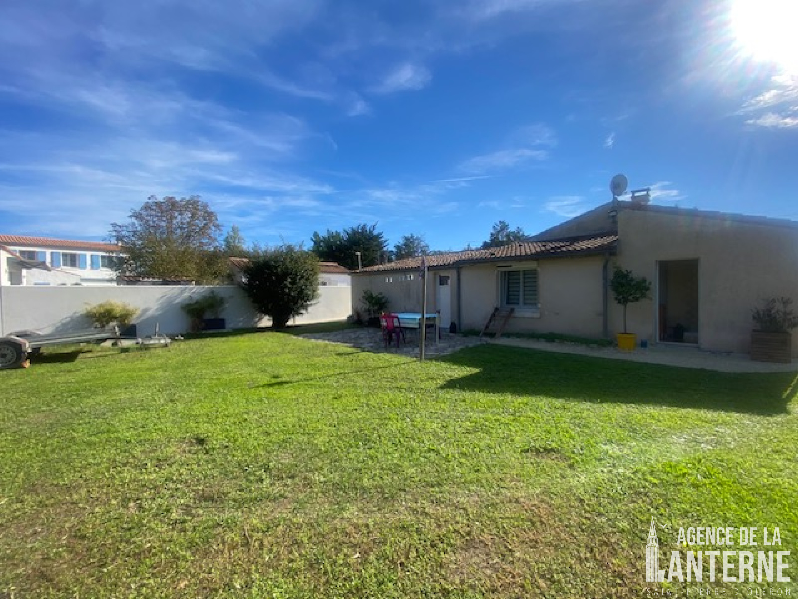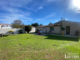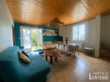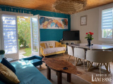Dans un hameau, à 4 kms des plages et à 2 kms des commerces, sur un terrain clos de 612 m2 donnant sur un bosquet, maison de plain-pied en bon état (1986) d'une surface habitable de 75 m2 comprenant :