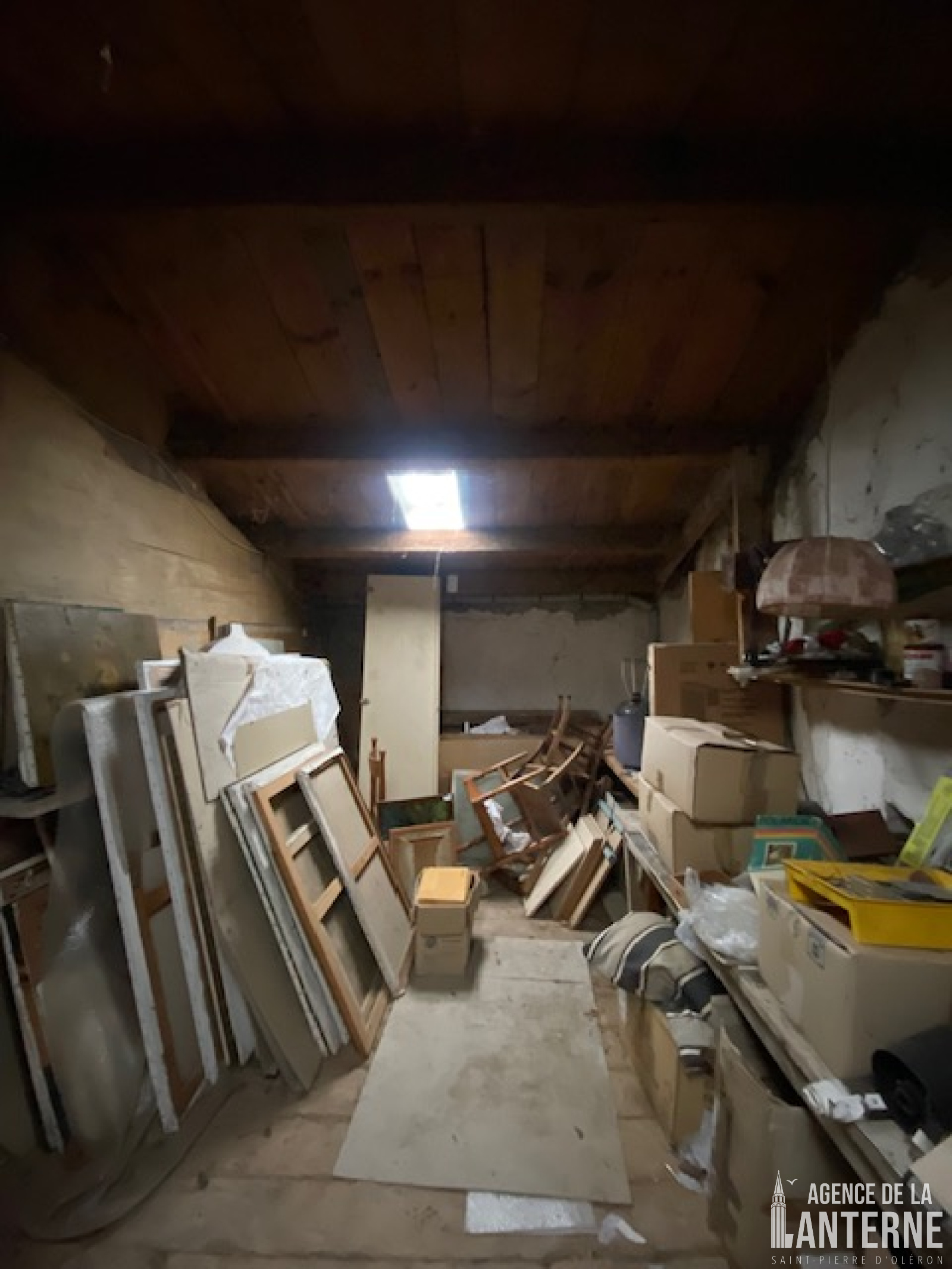 A l’étage : un grenier de 52 m² avec accès par un escalier extérieur en pierres.