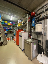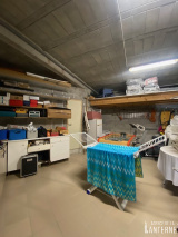 Garage de 100 m² (hauteur de plafond : 2,50 à 3 mètres) et cave.